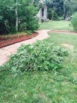 We ended up with 2.25″ of rain in about half an hour yesterday when all was said and done. Flash floods were the fear of the day in many areas of town. Thankfully, we live on the top of a hill, so we rarely have flooding problems here at home. This morning, while it was nice and cool, I decided to attack our rainforest and see what kind of good I could do. I worked on it all for about an hour and this is all I accomplished in that amount of time: